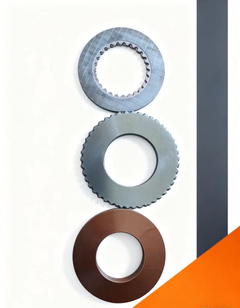 摩擦片钢片”原厂摩擦片:表面纹路清晰、耐磨层厚度均匀,副厂件易变形打滑”。“负责卷扬的动力传递,磨损过度会导致卷扬‘打滑’‘吊物无力’,选的时候看材质(原厂多为高耐磨合金)、看尺寸(老款3代有专属规格)。”